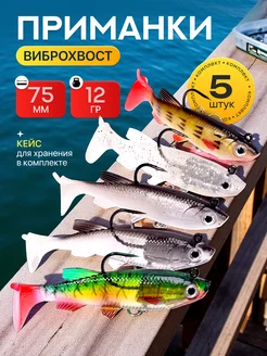 Воблеры для рыбалки, набор 5 штук твистер и виброхвост