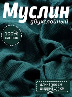 Муслин ткань для шитья 3 метра двухслойный изумруд