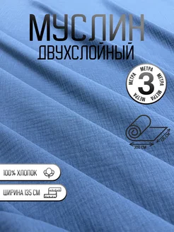 Муслин ткань для шитья 3 метра двухслойный индиго