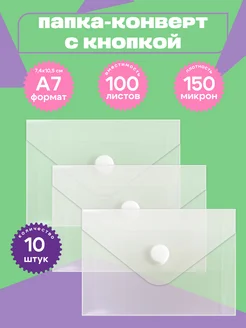 Папка канцелярская А7 на кнопке конверт 10 штук