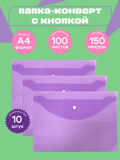 Папка канцелярская А4 на кнопке конверт 10 штук