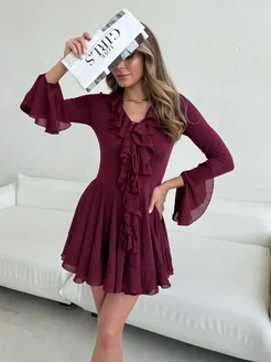 Платье мини с воланами в офис корпоратив