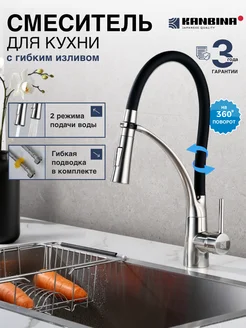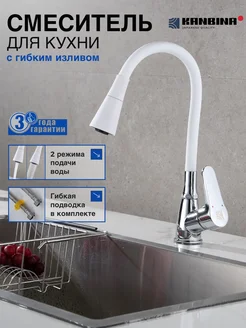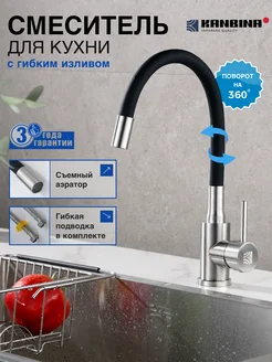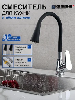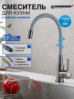 Смеситель для кухни с гибким изливом и лейкой серебро