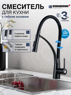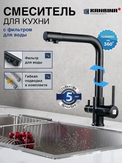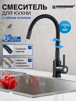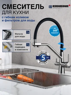 Смеситель для кухни гибкий с фильтром оружейная сталь