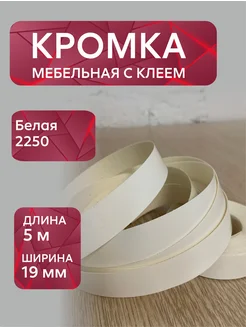 Кромка мебельная с клеем Белая 2250, 19 мм, 5 метров