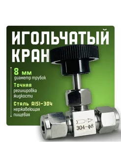 Кран игольчатый обжимной 8мм (AISI 304)