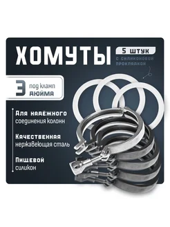 Хомут под кламп 3 дюйма, 5 шт, с силиконовой прокладкой