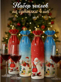 Чехлы на бутылки новогодние набор 4 шт для вина