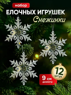 Новогодние игрушки на елку Снежинки большие набор 12 шт