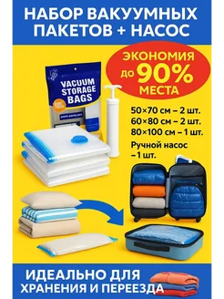 Набор вакуумных пакетов с насосом для хранения вещей 5 штук