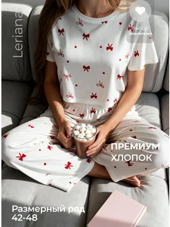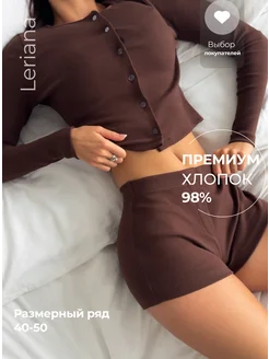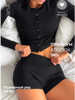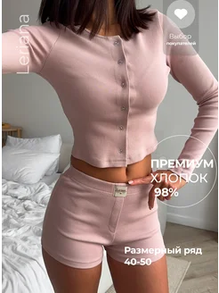 Пижама новогодняя с шортами и лонгсливом в рубчик