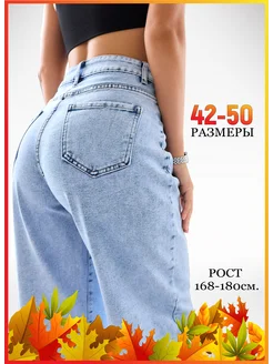 Джинсы широкие багги светлые на высокой посадке стрейч