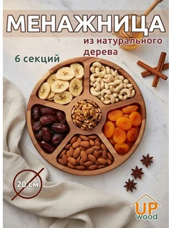 Менажница деревянная 20 см 6 секций, для сервировки и орехов