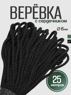 Веревка Черный 25 метров Шнур хозяйственный 6 мм