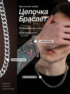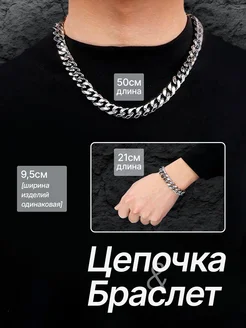 Комплект широкая цепочка на шею с браслетом 9.5*50 см