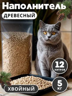 Древесный наполнитель для кошачьего туалета 5 кг 12л