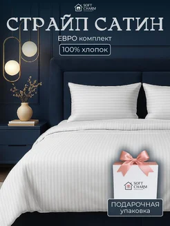 Постельное белье евро страйп сатин