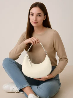 Сумка хобо кросс-боди через плечо маленькая молочная
