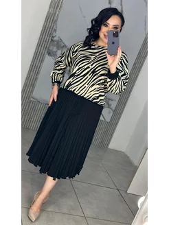 Костюм трикотажный осень с юбкой плиссе большие размеры