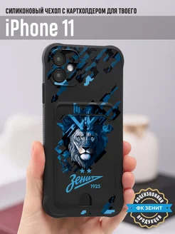 Чехол на iPhone 11 картхолдер с принтом ФК Зенит