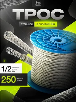 Трос стальной оцинкованный в ПВХ оплетке 1 мм, длина 250 м
