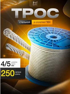 Трос стальной оцинкованный в ПВХ оплетке 4 мм, длина 250 м