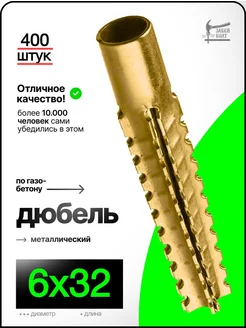 Металлический дюбель для газобетона 6х32 мм, 400 шт
