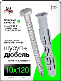 Фасадный дюбель с шурупом под ключ 10х120 мм, 50 шт