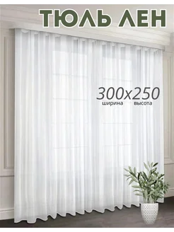 тюль для гостиной спальни лён белый 300х250