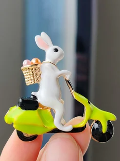 Брошка, Зайчик со стразами, 40х25 мм