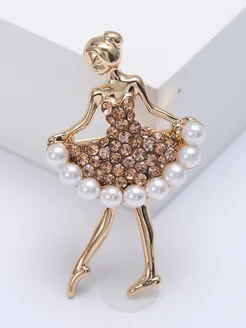 Брошка, Балерина, золотистый, 45х27мм