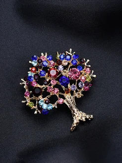 Брошь, Дерево с камнями, 52х48 мм