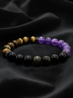Браслет из натуральных камней подарок аметист обсидиан