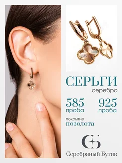 Серьги серебро 925 клевер позолота