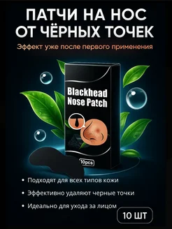 Пластыри для носа от черных точек полоски очищающие с углем