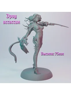 Миниатюра Темная эльфийка ассассин ДнД 75мм
