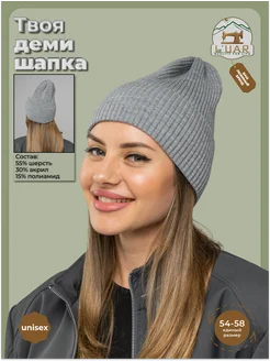 Шапка осенняя вязаная бини с отворотом серая