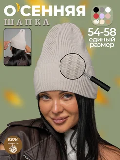 Шапка осенняя вязаная бини с отворотом