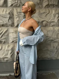 Костюм летний с брюками в пижамном стиле