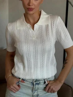 Футболка поло вязаная кроше ажурная олд мани