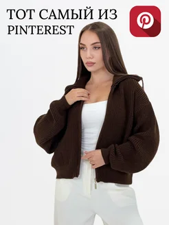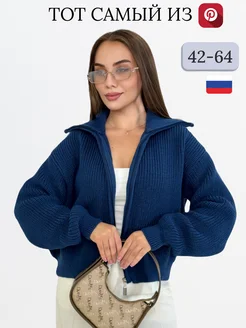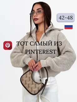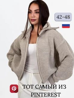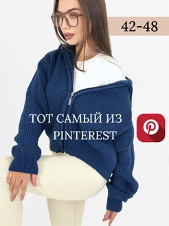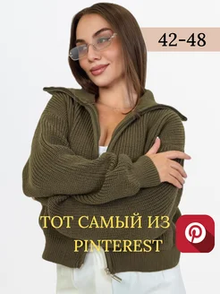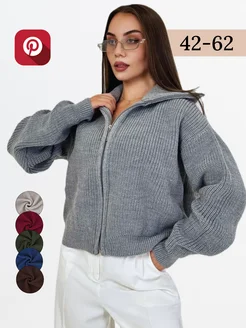 Свитер на молнии оверсайз вязаный с горлом больших размеров