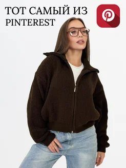 Свитер с горлом на молнии вязаный теплый оверсайз
