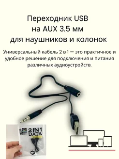 Кабель 2 в 1 USB + AUX 3.5 мм, для зарядки и звука