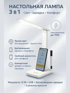 Настольная лампа 3 в 1 с беспроводной зарядкой
