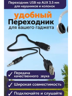 Переходник USB на AUX 3.5 мм для наушников и колонок