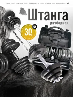 Гантели разборные 30 кг набор спортивный инвентарь с штангой