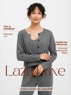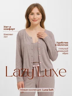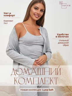 Домашний женский комплект тройка, пижама теплая с кардиганом