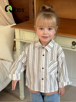 Детская хлопковая рубашка в полоску с длинными рукавами