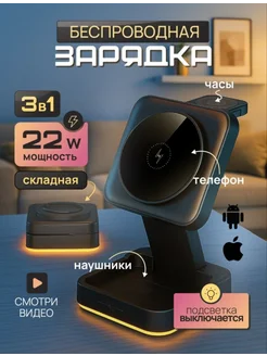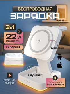 Беспроводная складная зарядка 3 в 1 для iPhone с подсветкой