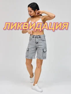 Шорты бермуды джинсовые удлиненные на резинке AMG